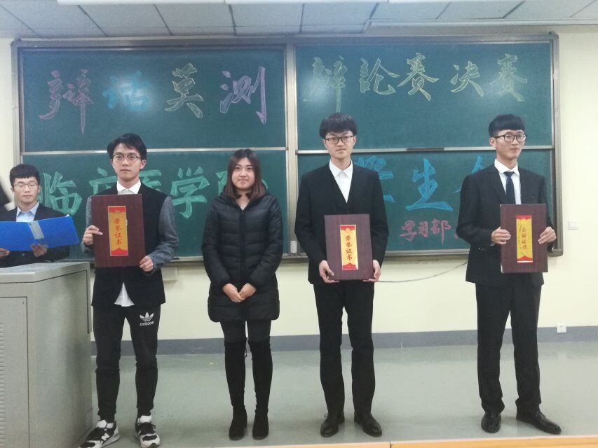 参赛的辩手们配合默契,他们妙语连珠、当仁不让。他们旁征博引,把气氛带入了一个又一个高潮。在总结陈词阶段,双方辩手引经据典,才思敏捷,从容面对。现场高潮迭起,掌声不断。最终,“纵横”队获得一等奖,“斗战圣佛七十二变”队、“惊鸿辩论”队获得二等奖,“太白湖”队、“舌尖四剑客”队、“三六十一”队获得三等奖。各位出席辩论赛决赛的部长们为获奖代表队和个人颁奖。