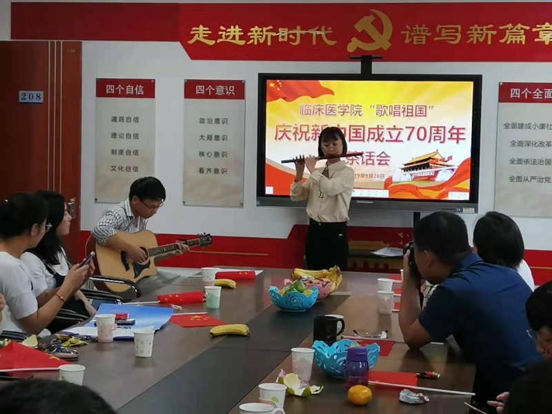 9月28日,我院在任城校区党员活动室举办“歌唱祖国”庆祝中华人民共和国成立70周年茶话会。院党委书记马奎元,副院长岳新,党委副书记尹国才,教师代表,党支部书记和部分学生党员代表共30多人共聚茶话会。